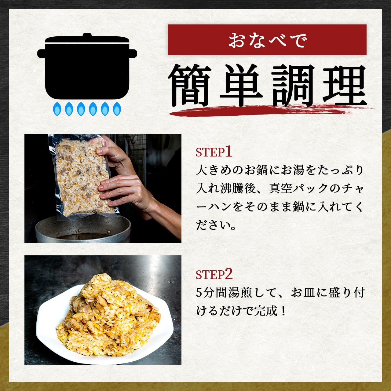 親父による1からの徹底的な監修。チャーシューの漬け込みから始まり、醤油ダレも監修して頂ける信頼できる職人さん達の腕で一食一食手作業により作られた炒飯!やっぱり機械じゃ再現できないんですよね。それなのでお届けまでちょっとお待たせしてしまうかもしれません。みなさん!そんな真心たっぷり、ボリュームたっぷりの特製チャーシュー炒飯をお腹いっぱい食べて元気に!そんな幸せな気持ちになってください。心を込めて責任を持ってお届け致します。
